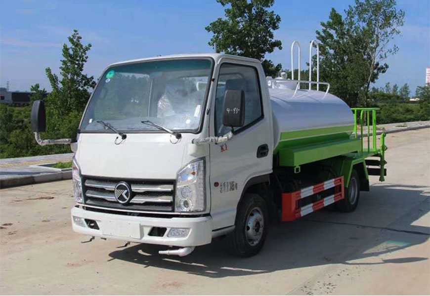 Tank volume: 3 cubic meters; tank body is made of 4mm thick Q235 carbon steel plate, formed in one piece; internal baffles have a wave-damping function to reduce the impact of the tank on the liquid when the vehicle is moving; equipped with a high-power special water pump, which is self-priming and self-draining; the whole vehicle has front spray, rear spray, side spray, and a greening water cannon on the rear platform. The water cannon can rotate in all directions and can be continuously adjusted to a straight jet, heavy rain, light rain, or drizzle; the front end cap has a water level gauge, the main pipeline of the rear platform has a 1-inch watering interface, a rear ladder, a fire hydrant connection, a self-flow valve, and a filter device.